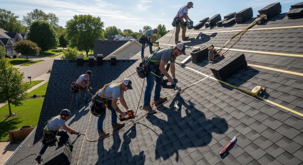 Roofers repair and install materials high above the ground. Balance and caution are essential. Summer heat and winter winds create difficult conditions. Despite the risks, their work protects buildings from weather damage over many years.
