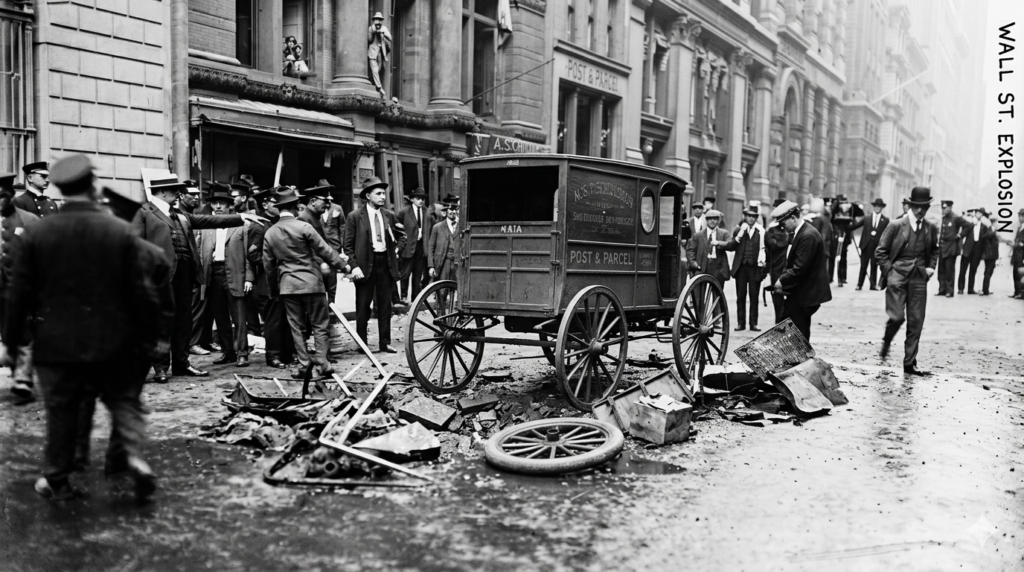 When the bells of the Trinity Church were ringing, and the Wall Street employees were about to embark on their noontime stroll, a disastrous explosion occurred out in front of the headquarters of J.P. Morgan and Company – the largest banking organization of the time in the world.